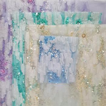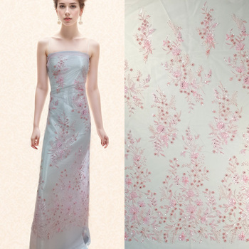 ハイエンド環境にやさしい織りメッシュ刺繍生地マルチテクノロジーレーザービーズ3D刺繍高柄ウェディングドレス